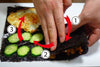 写真のようにのりの中央部分まで(赤い線部分)切り込みを入れて下さい。